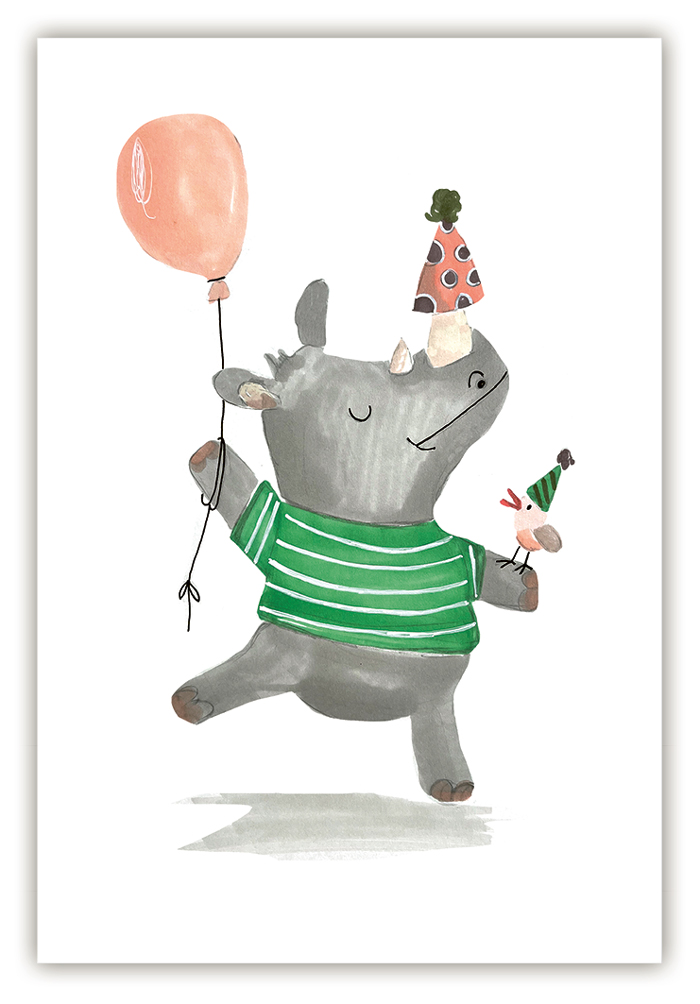 Nashorn mit Luftballon (o.T.) (Hoch)