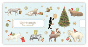 Die herausnehmbare Karte mit dem aufgedruckten Wort »Gutschein« befindet sich in einer farbig bedruckten, festen Kartonhülle mit Sichtfenster.