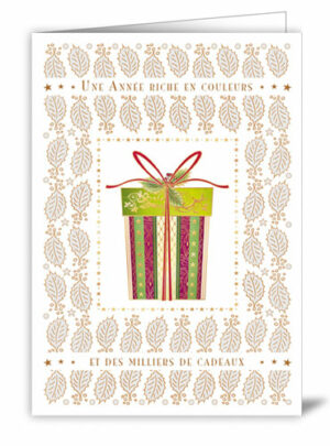 Carte double de très haute qualité avec dorure + enveloppe sous cellophane Intérieur: blanc Couleur enveloppe: crème Dimension: 17 x 12 cm